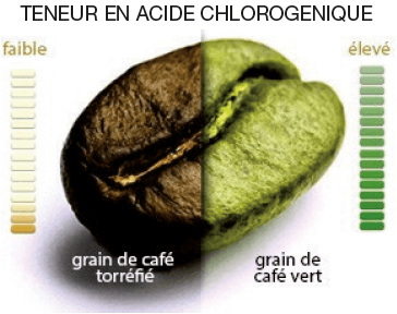 En effet, le grain de café naturel, donc vert, est riche en polyphénols,en acides chlorogénique,caféique et quinique. Des éléments qui jouent un rôle capital et déterminant pour l’organisme humain et plus particulièrement pour l’amincissement.